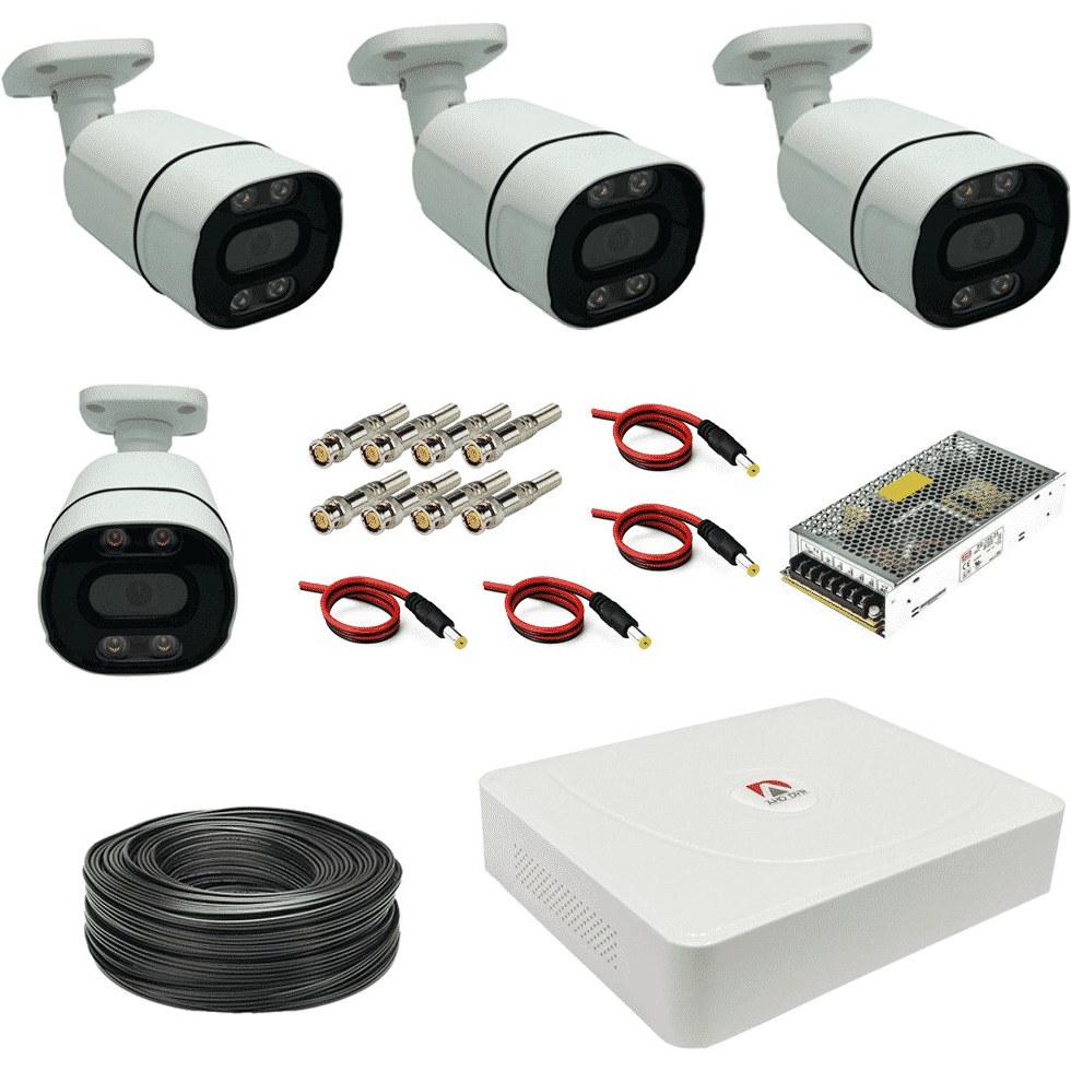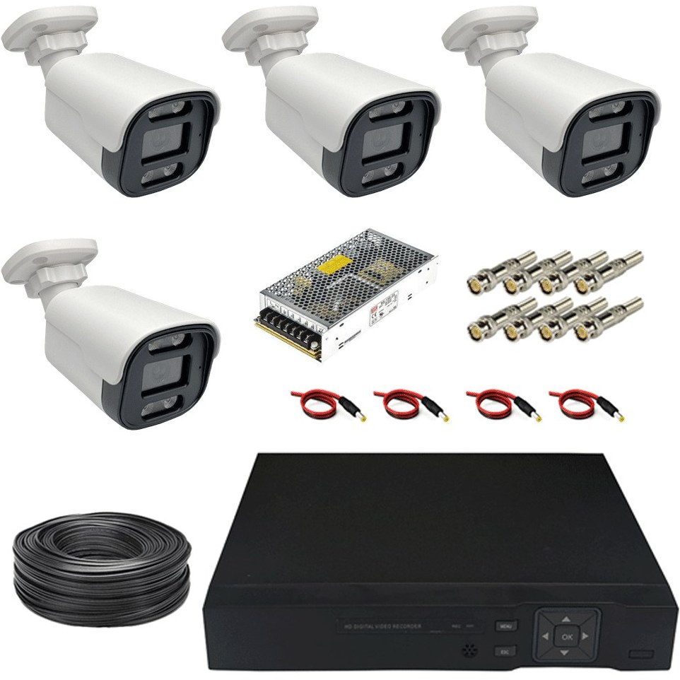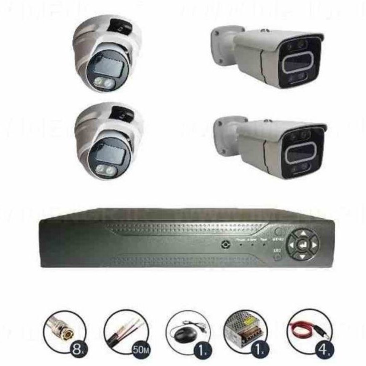 پکیج کامل آماده نصب 4 دوربین فول اچ دی دید در شب رنگی وارم لایت فول اچ دی xmeay
